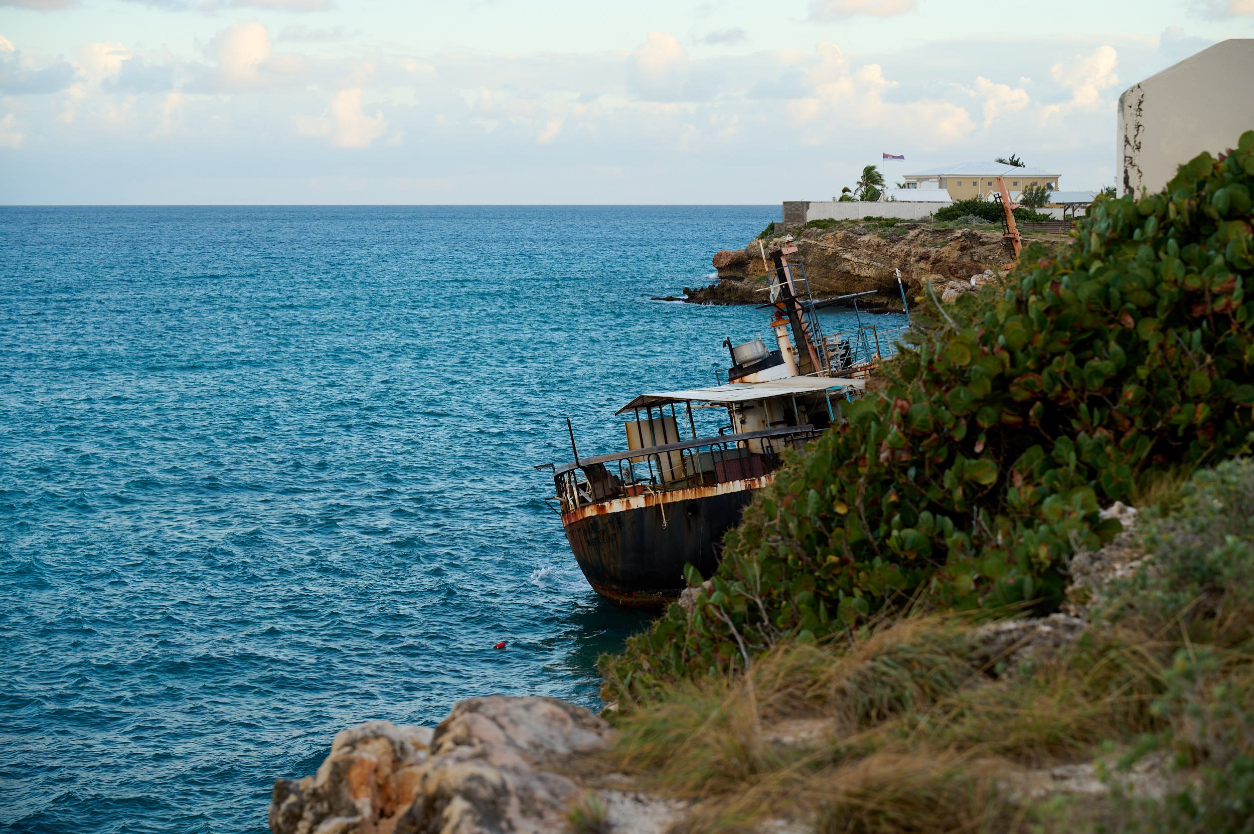 Along the coast, a commercial vessel sits rusting against rocks where storm surge left it, the Caribbean behind it a ridiculous shade of turquoise. The water is beautiful. The ship doesn't move. Both things are true and neither cancels the other out, which is the most accurate description of Sint Maarten I can offer.